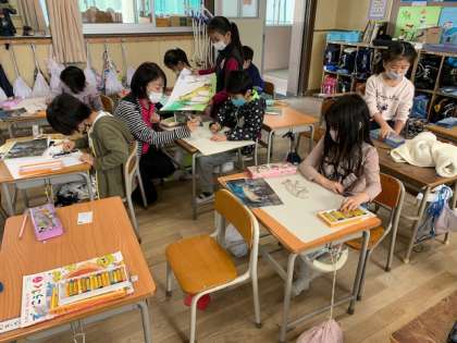 11月10日(水)1時間目、1年1組は図工で動物園で見た動物の絵を描いていました。