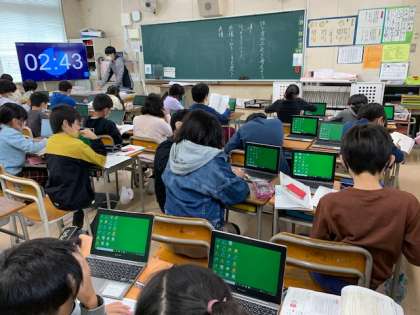 11月11日(木)3時間目、4年2組は国語で「聞いてほしいな、心に残っている出来事」を学習していました。話す原稿をもとに、声の大きさや間の取り方の工夫を考えていました。