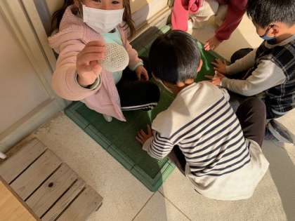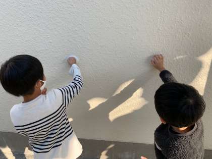 11月15日(月)5時間目、1年2組は図工で「でこぼこ はっけん!」の学習をしていました。粘土を持って校内を巡っていきます。おもしろい形があれば、粘土で「でこぼこ」の形をうつしとって行きます。遊んでいるだけのように見えますが、形を把握するということにおいて図工にとどまらず、算数にも発展していきそうです。遊びの中に学びがあるのですね。