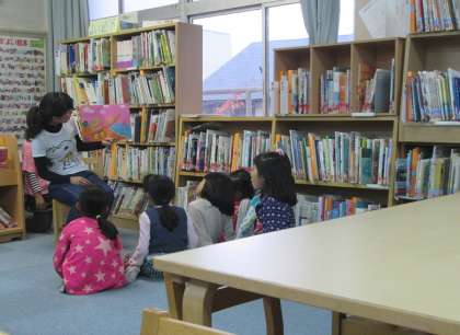 朝ののびっこタイムの時間に絵本の読み聞かせをしたり、図書室の本の修理や、放課後の図書室開放などをおこなったりしています。