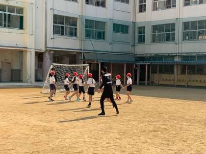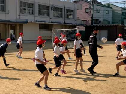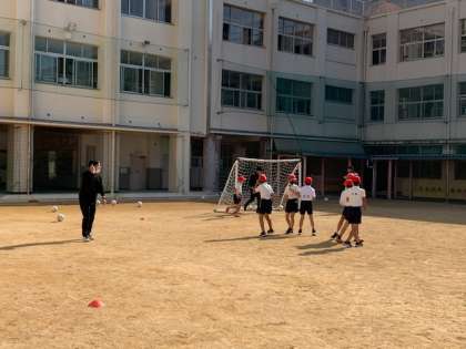 11月16日(火)3時間目、5年2組は1組同様セレッソ大阪のコーチにサッカーを指導していただきました。