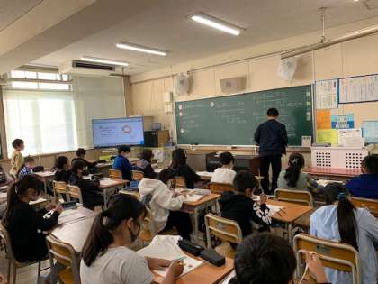 11月17日(水)2時間目、5年2組は算数で単位量あたりの大きさを数直線を使って考えていました。