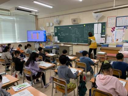 11月17日(水)2時間目、2年1組は算数で8の段の九九を学習していました。