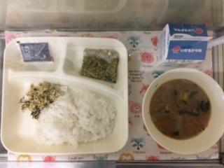 11月19日(金)お好み焼き、豚汁、とりなっ葉いため、ごはん、牛乳