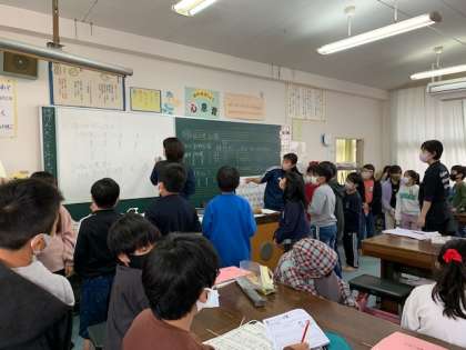 11月22日(月)2時間目、4年1組は音楽で「茶色の小びん」の合奏に向けて役割を決めていました。人気のある楽器はじゃんけんをしていました。子どもにどの楽器が人気があるのかを聞いてみますと、「木琴」という答えが返ってきました。