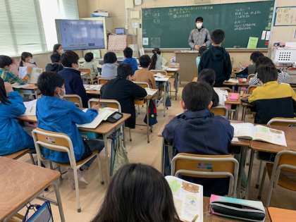 11月24日(水)1時間目、4年2組は社会科で大和川のつけかえについて学習していました。反対があったことを年表で調べていました。