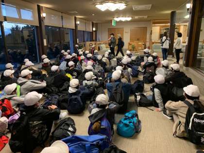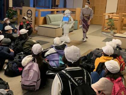 開舎式 児童代表がしっかりと挨拶できました。ペッパー君から案内がありました。
