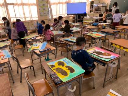 11月29日(月)3時間目、1年1組は動物園の絵に名札をつけていました。