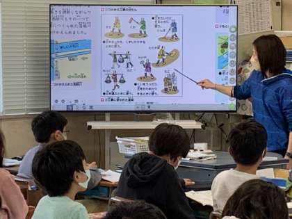 12月1日(水)4時間目、4年1組は社会科で「大和川のつけかえ」を学習していました。昔の工事の様子を振り返っていました。