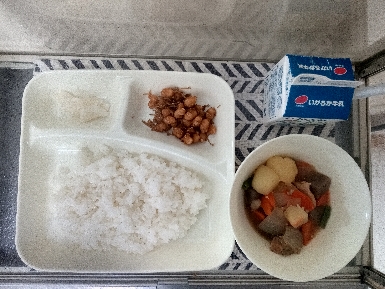 じゃこ豆は、油であげた大豆とじゃこを甘辛いたれとごまで和えたかみごたえのある料理です。集中した様子で大豆を一粒一粒はしでつまんで食べる姿がみられました。