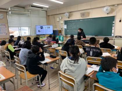 12月6日(月)5時間目、5年1組は社会科で、中小工場の技術について調べていました。また、新しい工業製品についても調べていました。「介護ロボット」という発言が聞こえてきました。