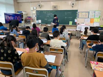 12月8日(水)1時間目、4年2組は社会科で大和川のつけかえを学習していました。大和川のつけかえ前後の城連寺村の地図を見て、子どもたちは「えー。」とか声をあげて驚いていました。地図を見れば一目瞭然だったのですね。