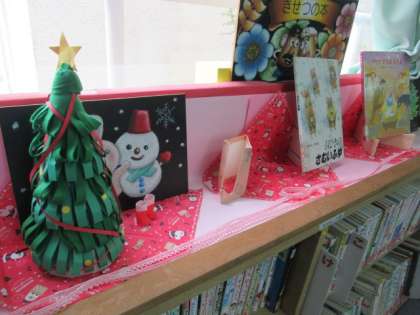 図書室が、クリスマスバージョンになっています。