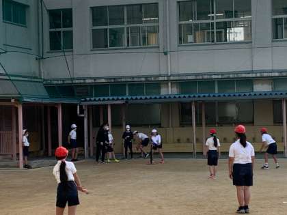 12月10日(金)5時間目、5年2組は体育でTボールをしていました。