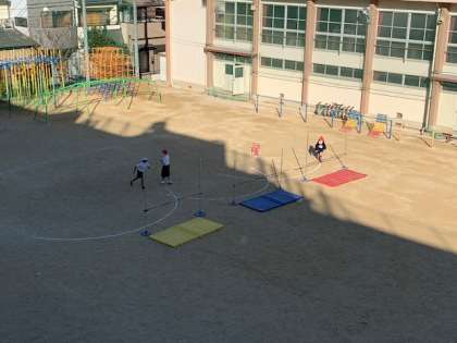 12月14日(火)1時間目、4年2組は体育でポートボールの試合をしていました。対戦しないチームは走り高跳びの練習と縄跳びの練習をしていました。審判をしているチームもあるようです。