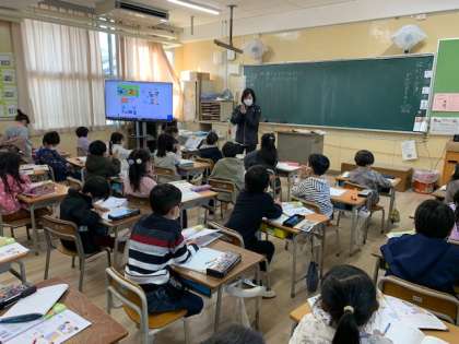 12月16日(木)2時間目、1年1組は算数で、じんとりゲームをしてひろさをくらべる方法を考えていました。