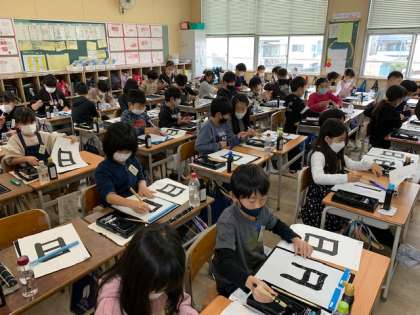 12月17日(金)1時間目、3年1組は書写で「日」という字を練習していました。「『おれ』に気を付けて書こう」というめあてで、書き順を確かめながら注意するところを確認していました。