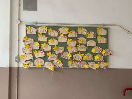 1月12日(水)3階の階段のところにある掲示板に4年生が作った絵馬が飾られていました。勉強で頑張ることを書いている子もいれば、友だちと仲良くしたいと書いている子もいました。願いがかなうといいですね。