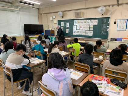 1月12日(水)4時間目、5年1組は外国語科でものがどこにあるかたずね合う学習をしていました。