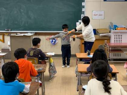 1月13日(木)3時間目、2年2組は算数で30cmメートルものさしを使って腕の長さを図っていました。ものさしよりも長いものを上手に測れたかな?