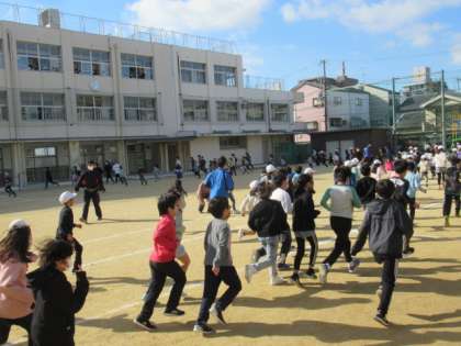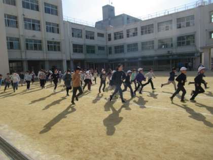 今日から耐寒かけあしが始まりました。音楽に合わせて1・3・5年が走りました。
