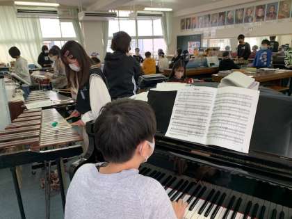 1月19日(水)2時間目、6年1組は音楽で「情熱大陸」の合奏をしていました。合わせるのは初めてだということでしたが、なかなか上手に合奏できていました。軽快なリズムに合わせて気持ちが一つになっていけばどんな演奏になるのでしょうか。2組と合わせて一つにするのが難しいと子どもが話していました。