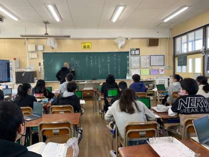 1月21日(金)1時間目、6年1組は国語で「心が動いたことを十七音で表そう」を学習していました。教科書の4つの俳句から表現の工夫を知ったうえで、冬の季語をパソコンを使って調べました。自分が選んだ季語から「連想メモ」を作っていました。次の時間には「連想メモ」をもとに俳句を作るようです。