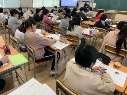 1月21日(金)2時間目、4年1組は国語で意見文の理由2と終わりの文章をかいていました。