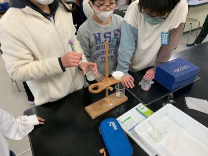 2月10日(木)4時間目、5年1組は理科で「水溶液を冷やすととけているものを取り出せるのだろうか。」という問題を解決するために実験をしていました。食塩水をろ過していました。ろ過した液を氷水で冷やすとどうなったのでしょうか。
