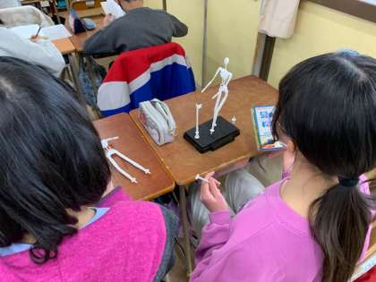 2月10日(木)5時間目、6年1組は図工で芯材を使って人の形を作っていました。また、まわりの背景を作っている人もいました。