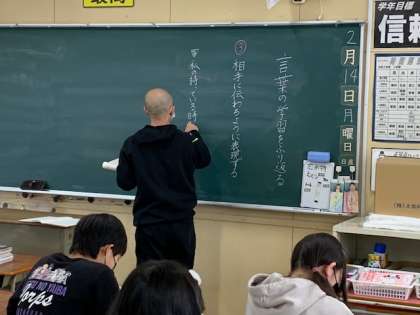 2月14日(月)2時間目、6年1組は国語で言葉の学習を振り返っていました。