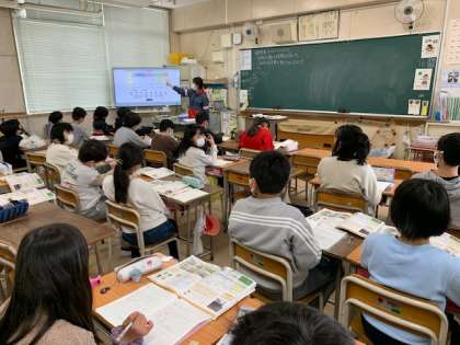 2月16日(水)3時間目、4年1組は社会科でぶどう作りの秘密を農事暦から読み取っていました。