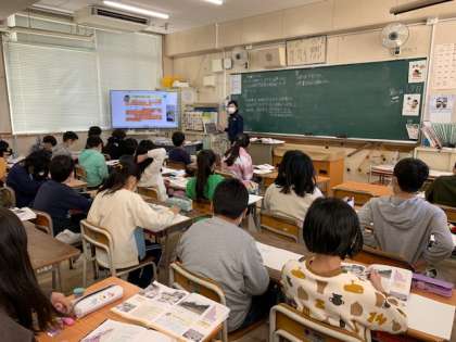 2月17日(木)3時間目、4年1組は社会科でぶどう畑が減ってきている原因とぶどう畑を守る取り組みについて教科書と動画で調べていました。