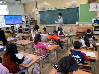 2月18日(金)1時間目、1年2組は算数で問題を読み取り、図に表してから考えていました。