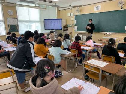 2月18日(金)1時間目、3年2組は算数で問題をどんどん解いて答え合わせをしていました。