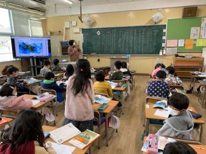 2月21日(月)2時間目、1年1組は国語でスイミーを場面ごとに詳しく読み取っていました。