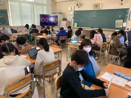 2月24日(木)1時間目、4年2組は総合的な学習の時間でアンケートを作っていました。「コロナ禍において、よい生活をするにはどうしたらよいか」という問題意識に基づいて班でアンケート作りをしていました。