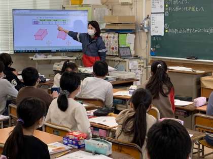 2月24日(木)1時間目、4年1組は算数で立方体と直方体の特徴について学習していました。