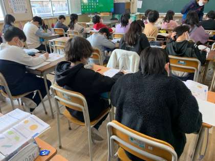 3月3日(木)1時間目、5年1組は算数で復習問題をしていました。今日は割合の問題で苦戦している子もいるようです。