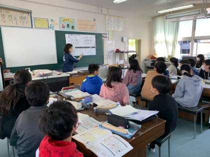 3月3日(木)2時間目、5年1組は音楽でリズム打ちを工夫していました。