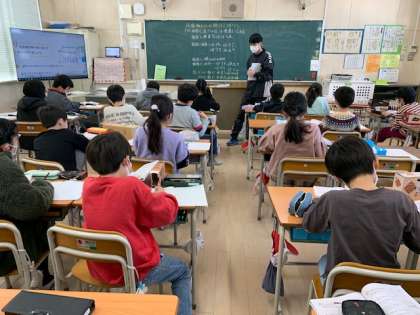 3月3日(木)2時間目、4年2組は算数で立方体や直方体の面と辺の関係を調べていました。