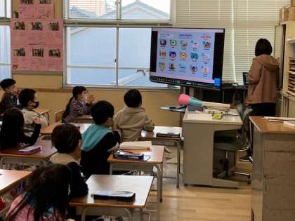 3月4日(金)英語タイムで1年生は楽しそうに英語の歌を歌っていました。