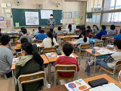 3月4日(金)2時間目、4年2組は算数で、平面上のものの位置の表し方を考えていました。