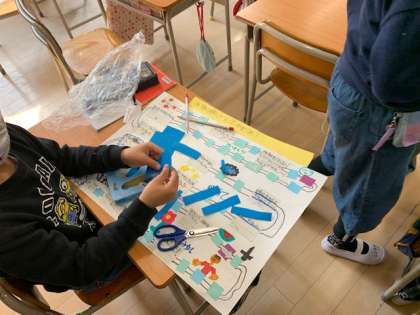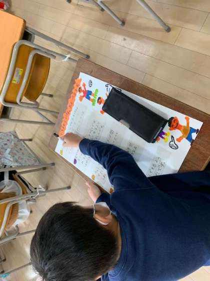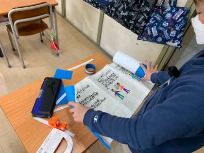3月7日(月)1時間目、2年1組は生活科で自分の成長についてまとめていました。巻物にしている子もいれば、自分の成長ベスト5を書いている子もいます。すごろくに表している子もいます。