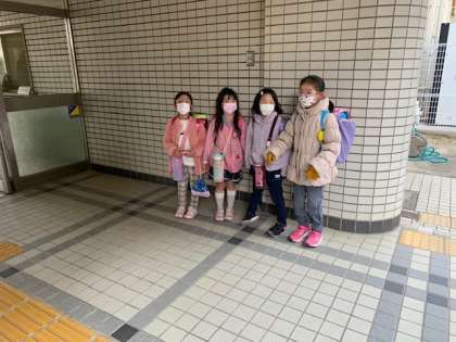 3月8日(火)登校時、1年生が4人集まって即席のおはよう隊ができました。おはよう隊があいさつすると、元気な声のあいさつが返ってきました。