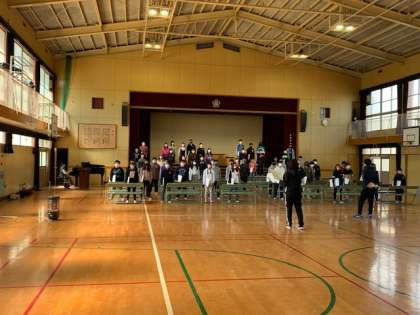 3月8日(火)4時間目、6年生は講堂で卒業式の練習をしていました。真剣な表情で歌の練習をしていました。