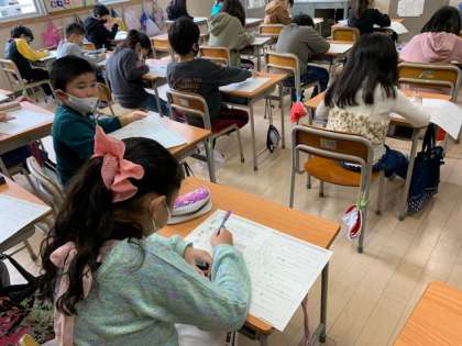 3月10日(木)のびっこタイムで2年1組は漢字の復習をしていました。