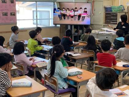 3月15日(火)1時間目、1年1組は生活科で、新しい1年生に学校を紹介する練習をしていました。