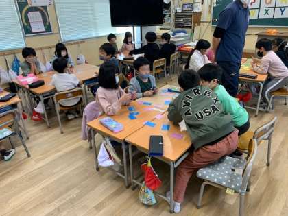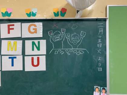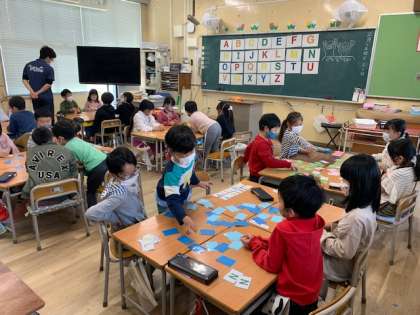 3月15日(火)1時間目、1年2組は英語活動で、アルファベット神経衰弱をしていました。