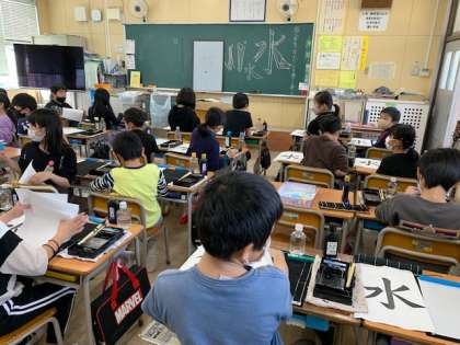 3月16日(水)1時間目、3年1組は書写で、「水」を練習していました。
